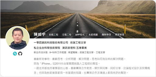 104履歷可在版頭撰寫個人簡介、新增個人網站連結與特色標籤  |